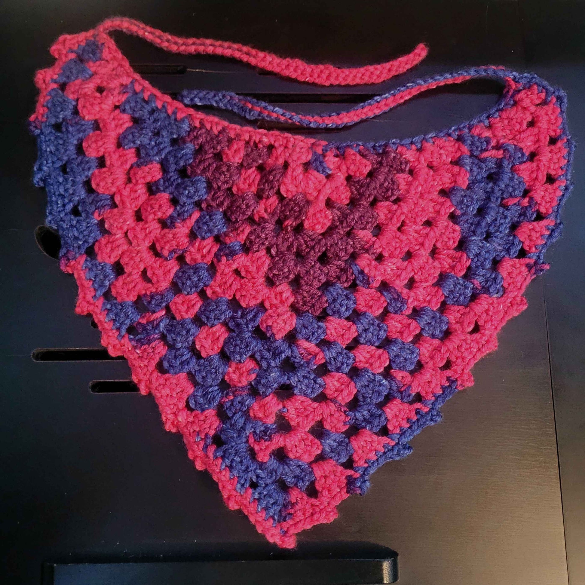 pattern: https://hayhaycrochet.com/crochet-patterns/accessories/beginner-crochet-bandana/